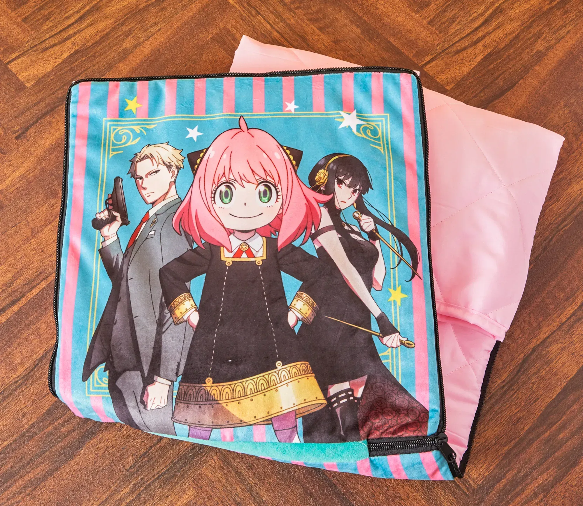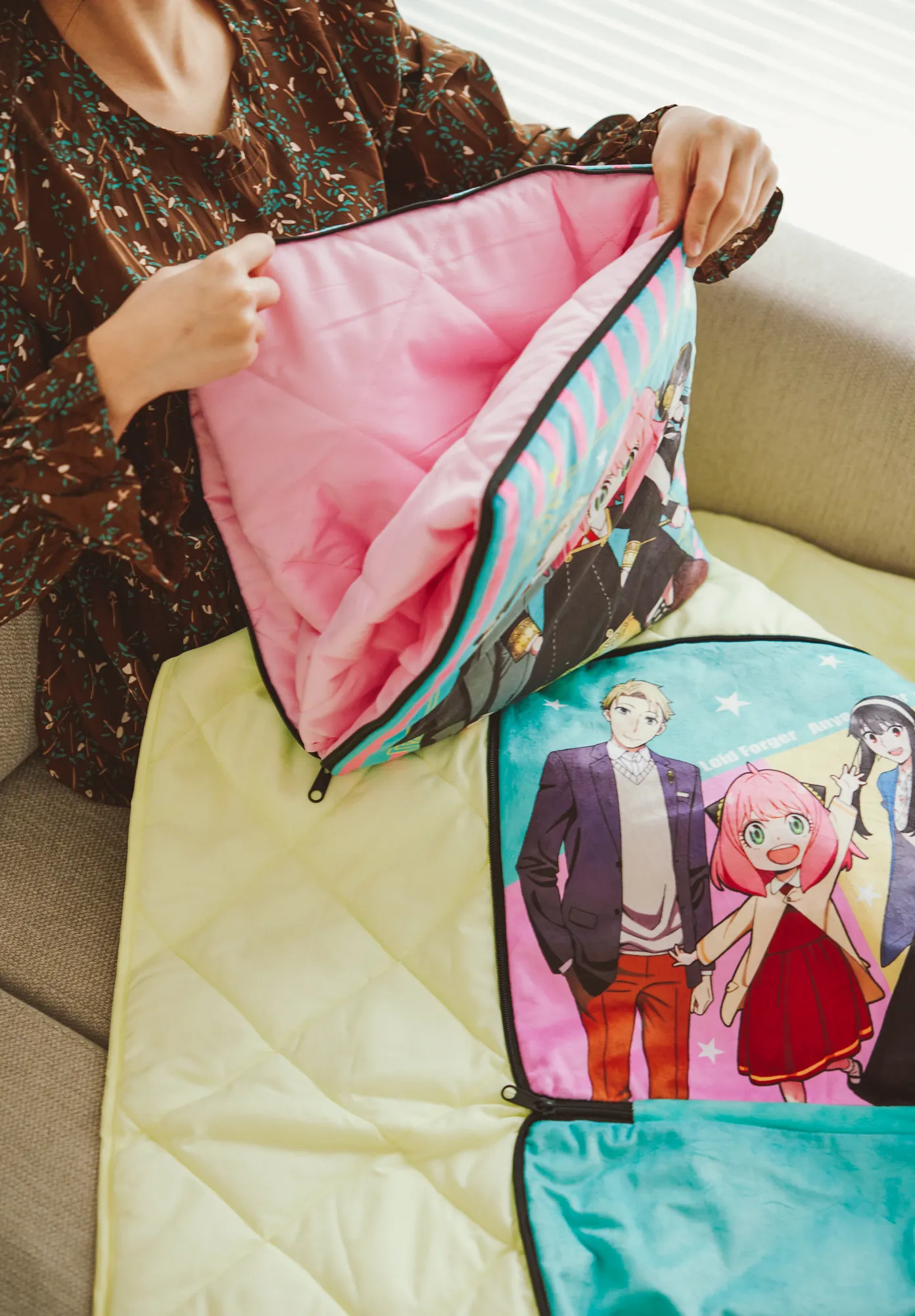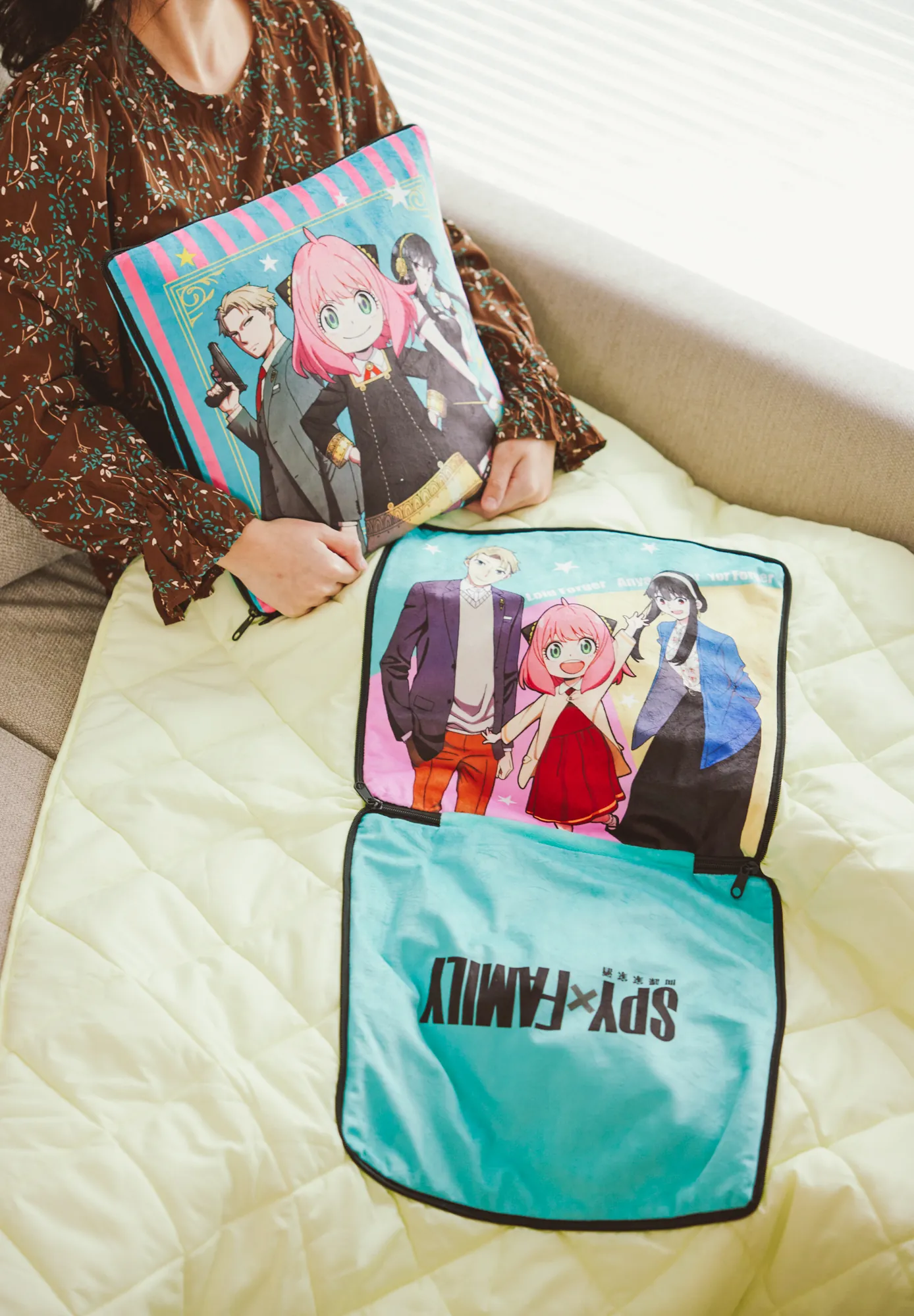 抱枕與毯子二合一商品,可結合各類授權角色 IP 進行開發製作。